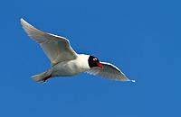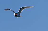 6 Mouette rieuse L’adulte se distingue de la Mouette mélanocéphale par son bec fin et ses pattes d’un rouge sanguin, par le bord de ses rémiges primaires sombres et sa silhouette fine. L’adulte en plumage nuptial a un capuchon chocolat. Espèce peu marine et sédentaire en Camargue. Elle est observée régulièrement lors des sorties en mer, mais ne s’éloigne jamais de la côte à la différence de la Mouette mélanocéphale, bien plus marine.